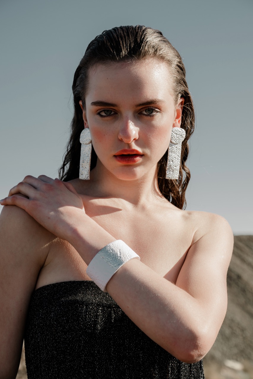 Designed and handcrafted in Greece, the brand explores the dialogue between organic forms and structured silhouettes, combining polymer clay with metal elements to create bold, tactile compositions.