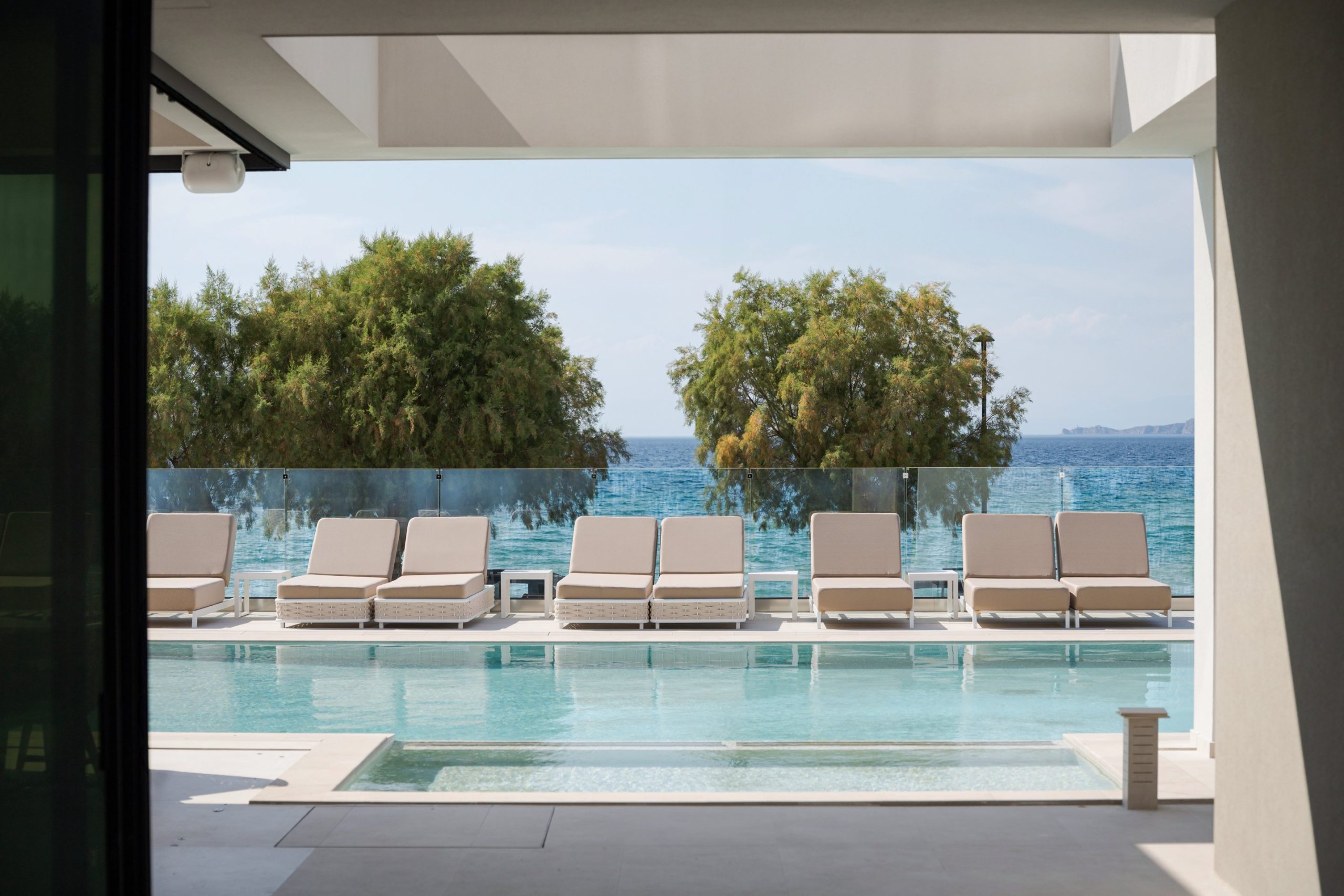 All rooms and suites boast unobstructed views of the sea and are characterized by refined design, natural materials, and understated luxury. Whether you choose a standard room or a Junior Suite with a private pool, you'll enjoy peace, comfort, and modern amenities such as a Smart TV, high-speed Wi-Fi, mini bar, and ergonomic workspace.