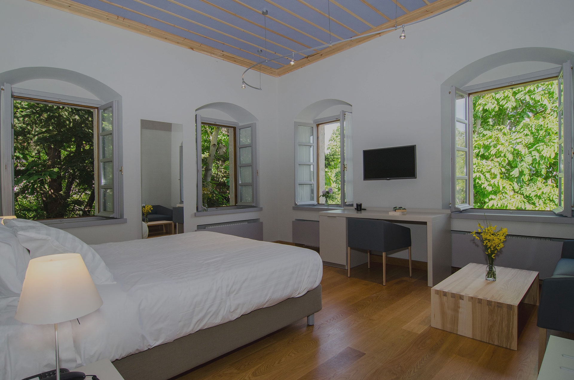 Spacious and cozy rooms that provide you with a desk, a flat TV screen set, individual heating, wooden floors, private bathroom, hair dryer, bath robes, slippers and ecological toiletries by Korres.