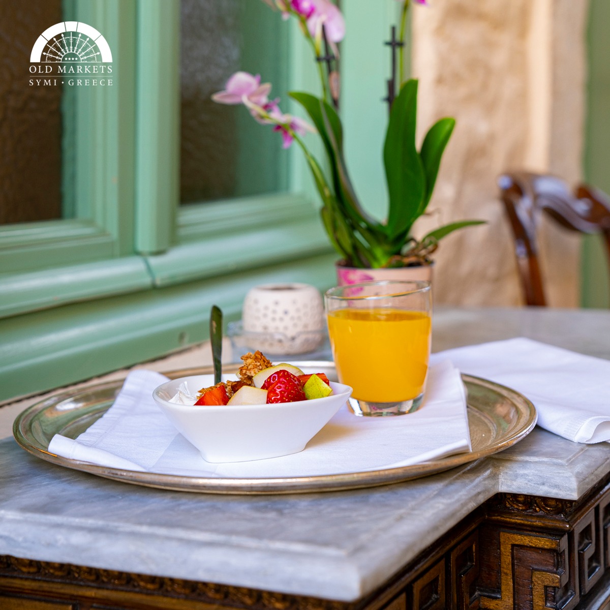 The adjoining Captain's Mansion, a traditional Symi mansion house, was fully renovated in 2016 and offers elegant rooms, some with painted ceilings and balconies to enjoy views of the charming harbor.