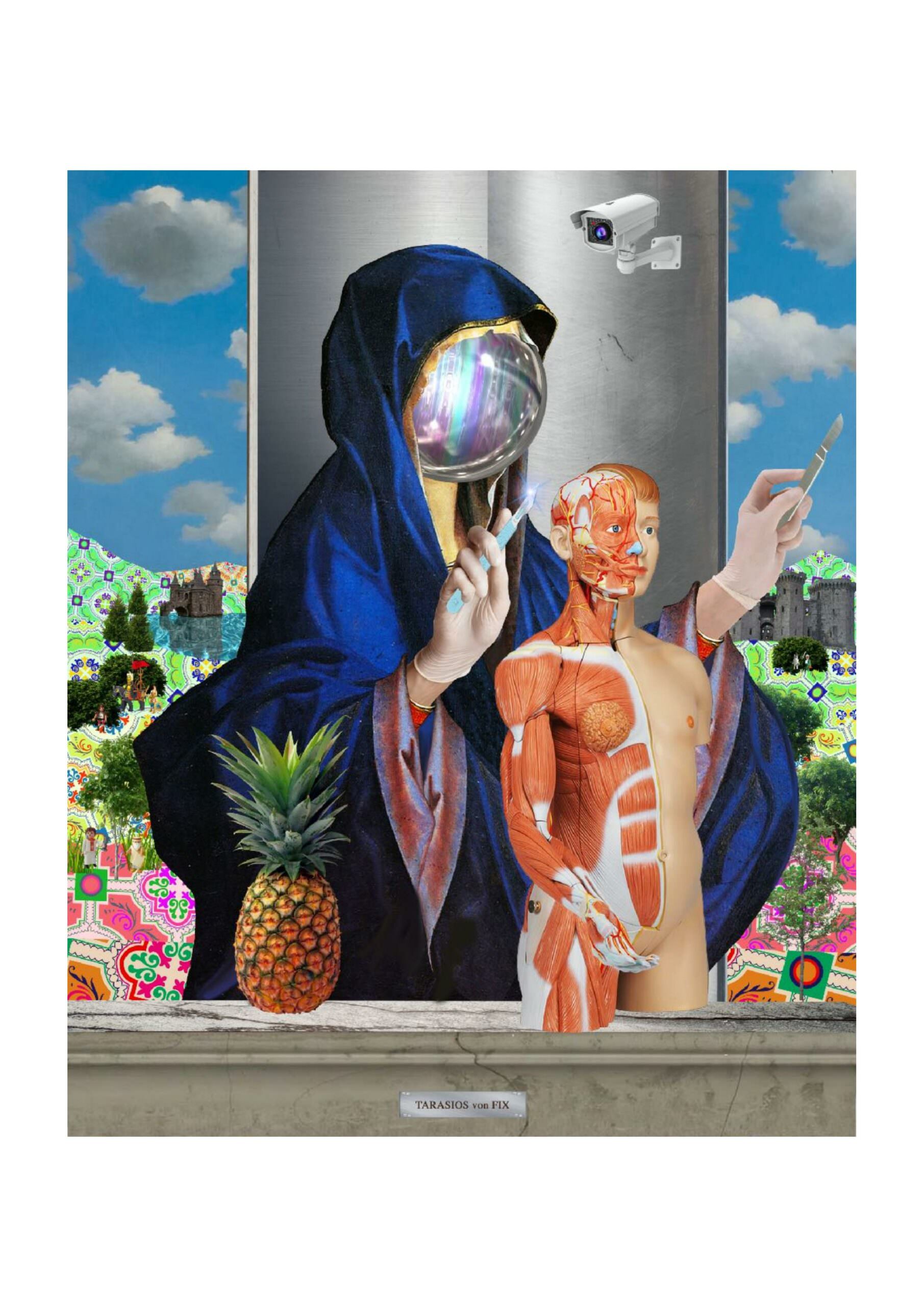 In the current phase of his work, he still takes inspiration from classical paintings, mainly Renaissance and Baroque, keeping the outlines of the composition and replacing the forms with the motifs he either finds ready-made or creates them himself.